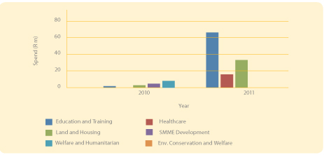 The Focus Areas are similar to those of SIOC-cdt for ease of coordination. Generally, more than one Focus Area ends up contributing to a project's activities as the implementation may, e.g., ECD under Education & Development may require infrastructure, hence the involvement of Infrastructure Focus Area. The table below shows the distribution of funding resources by the Focus Area for the period covered by the Short-Term Strategy.